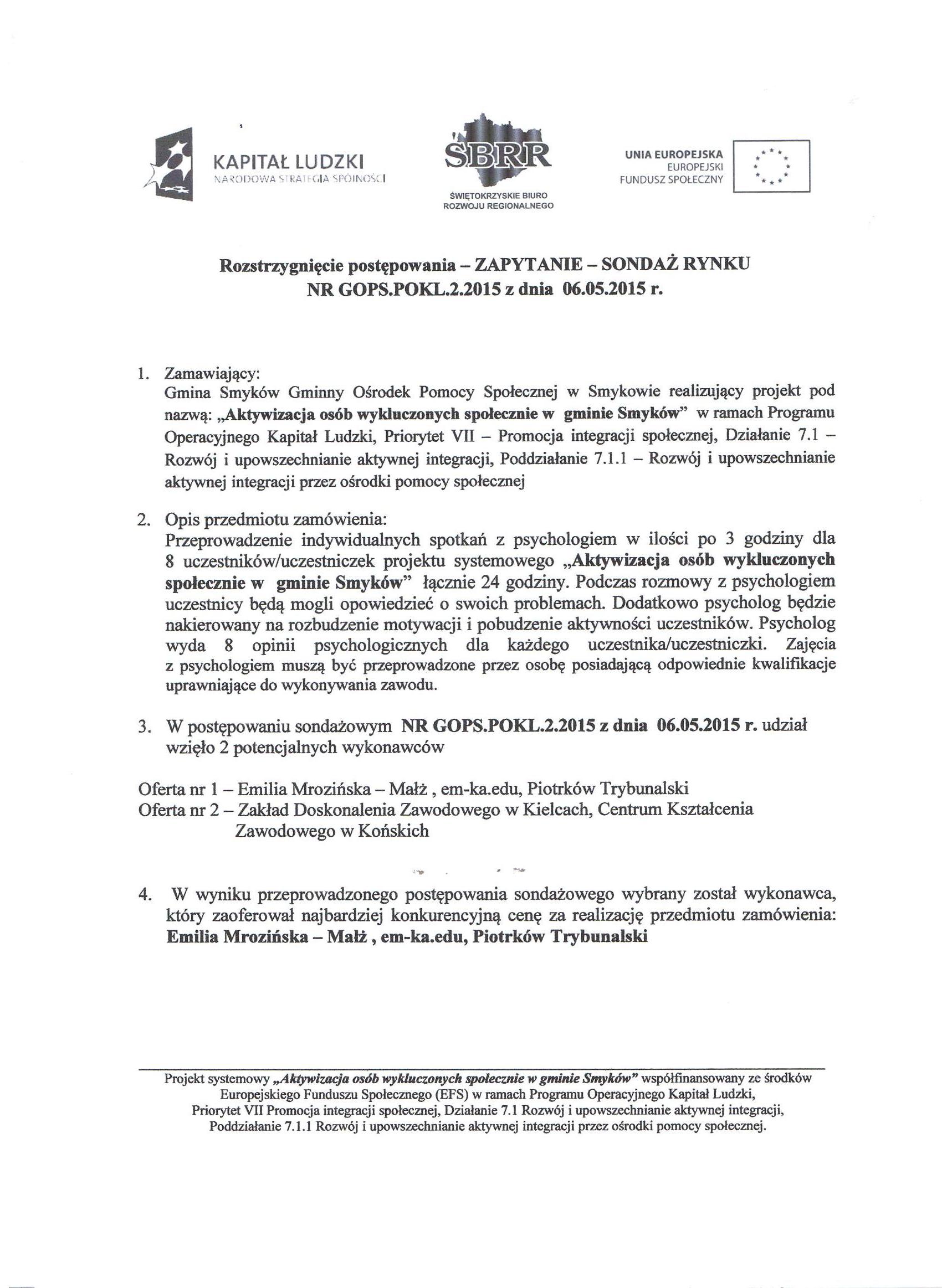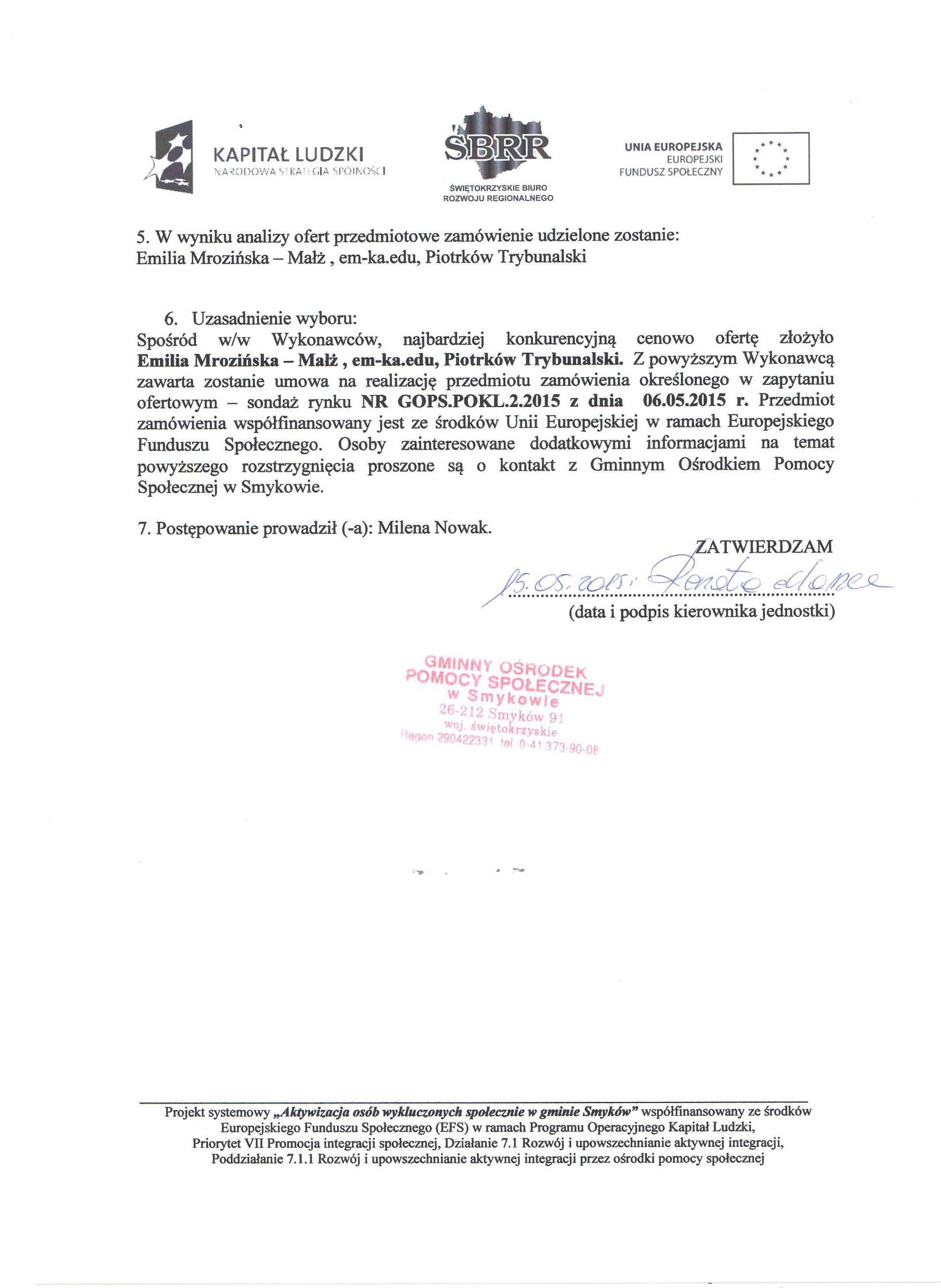Zapytanie - sondaż rynku nr GOPS.POKL.2.2015 -