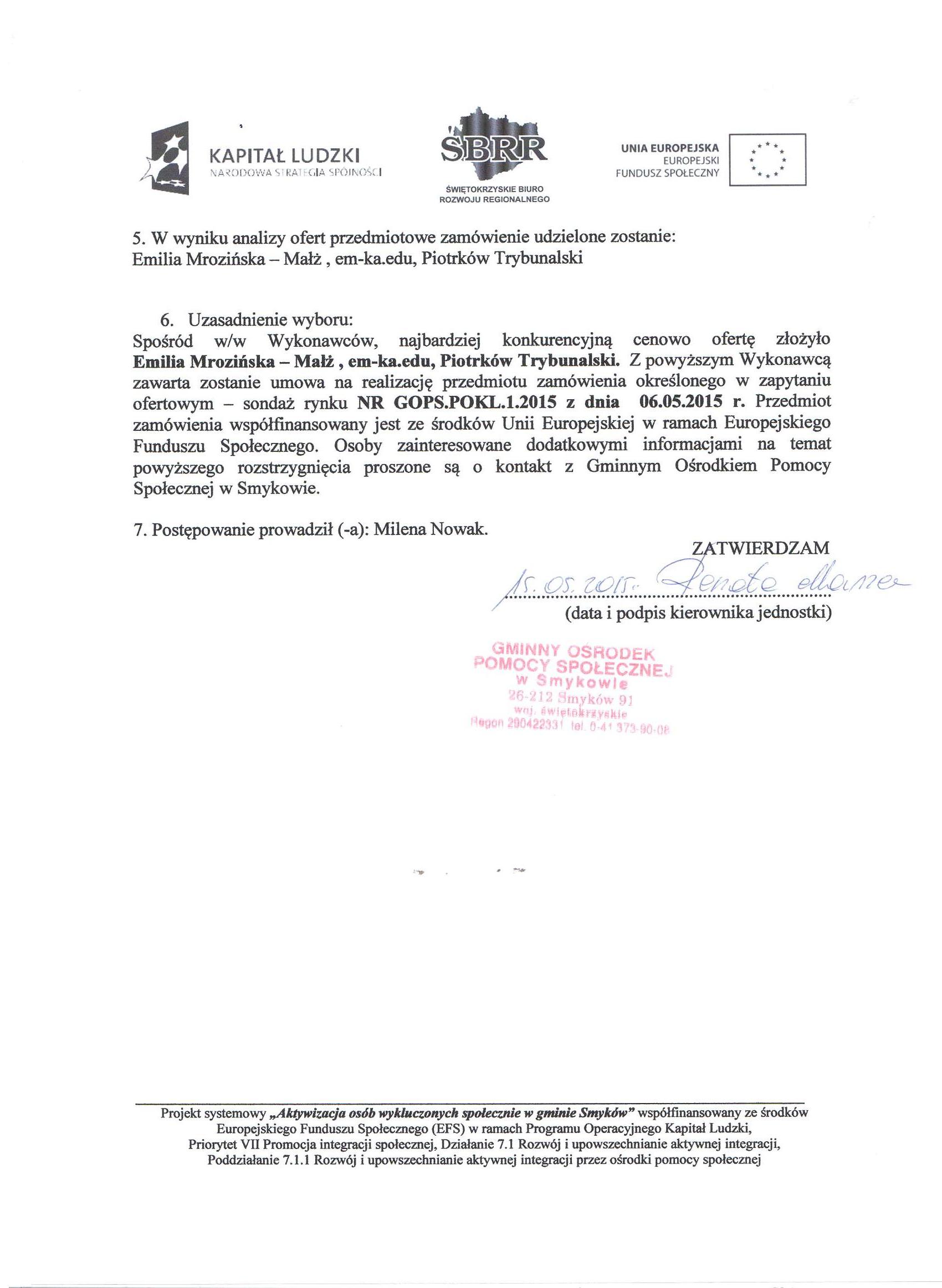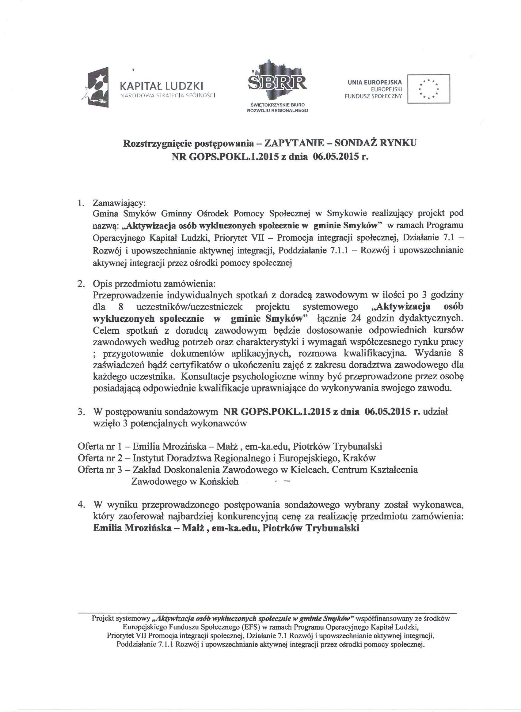 Zapytanie - sondaż rynku nr GOPS.POKL.1.2015 -