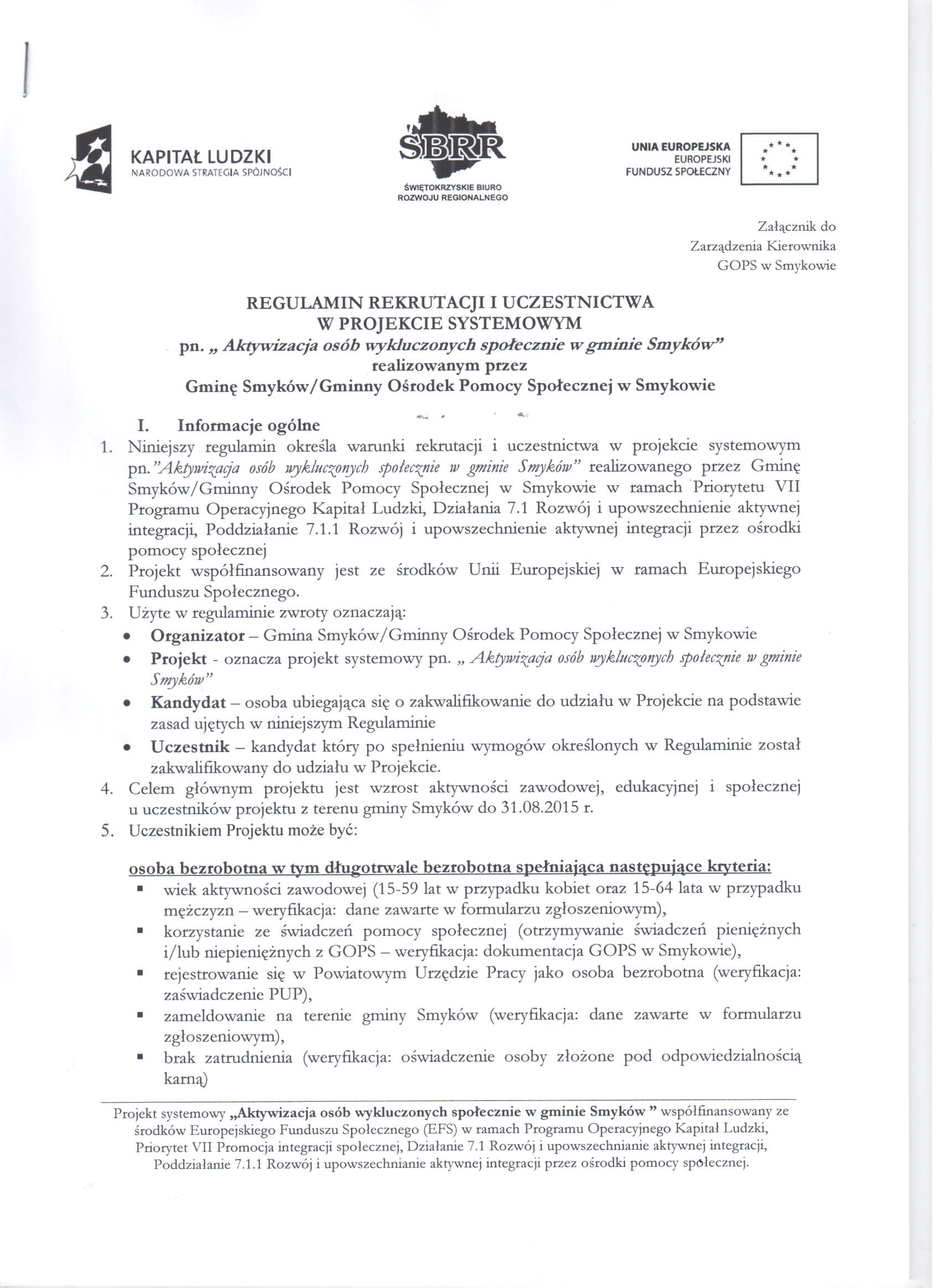 Regulamin rekrutacji i uczestnictwa w projekcie systemowym