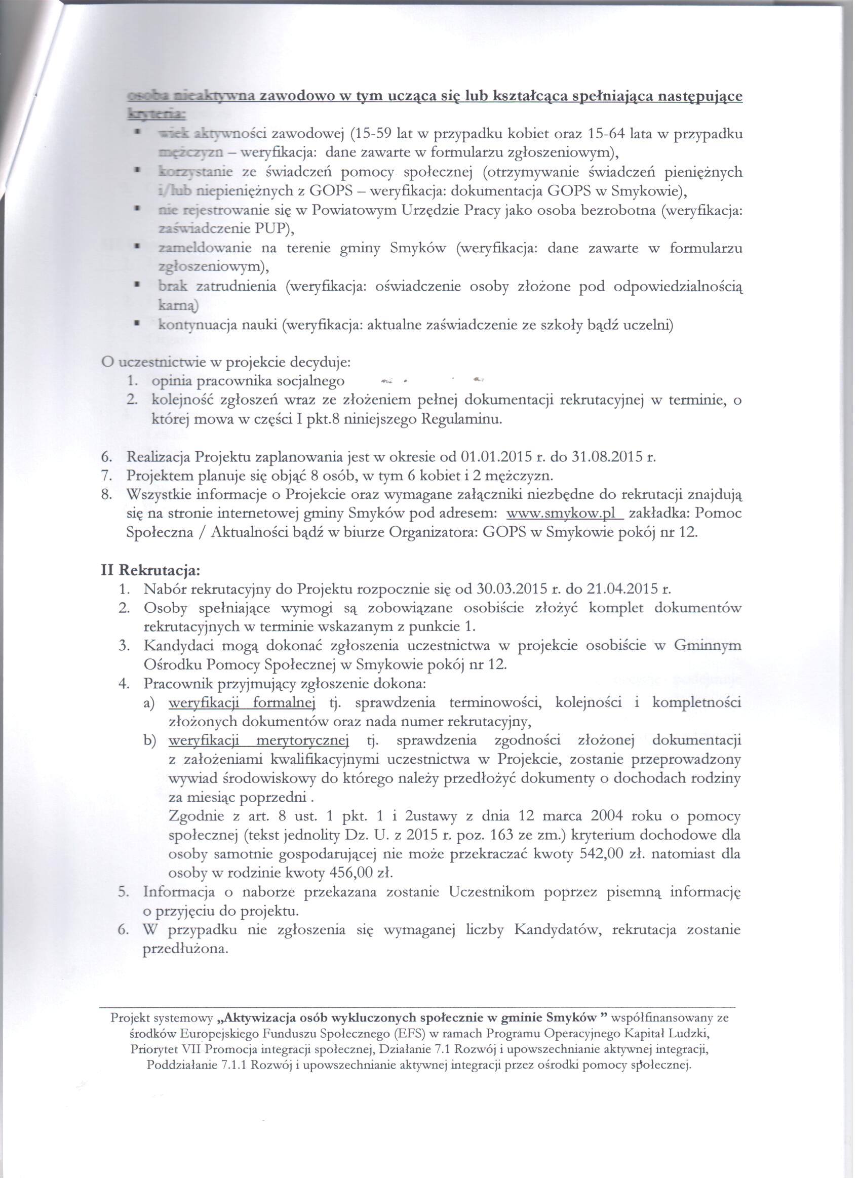 Osoby zainteresowane uczestnictwem w projekcie prosimy o kontakt z pracownikami GOPS w Smykowie tel. 041/37 39 008 e-mail: gopsmykow@poczta.onet.pl