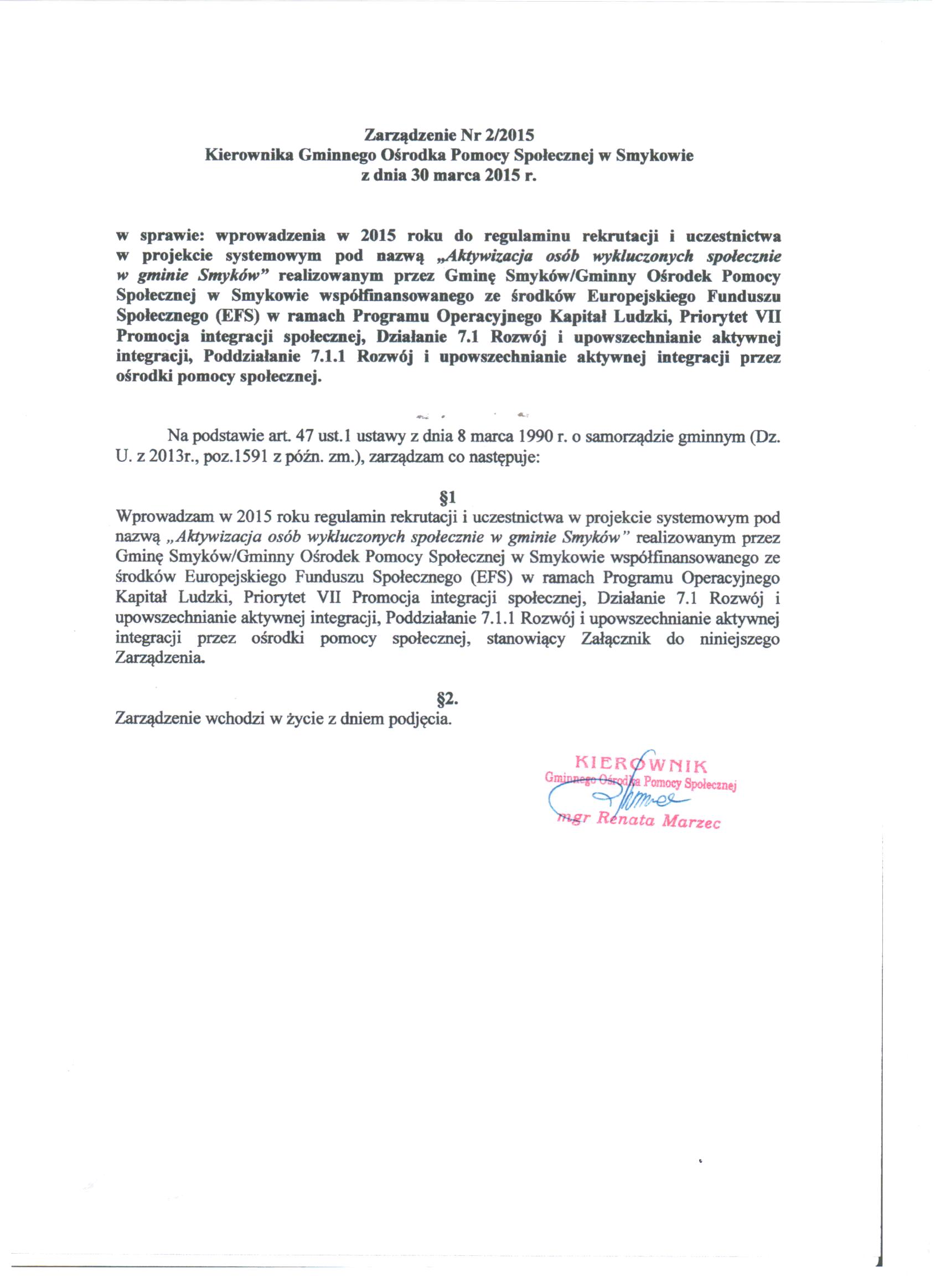 Zarządzenie nr 6/2015 w sprawie ustalenia