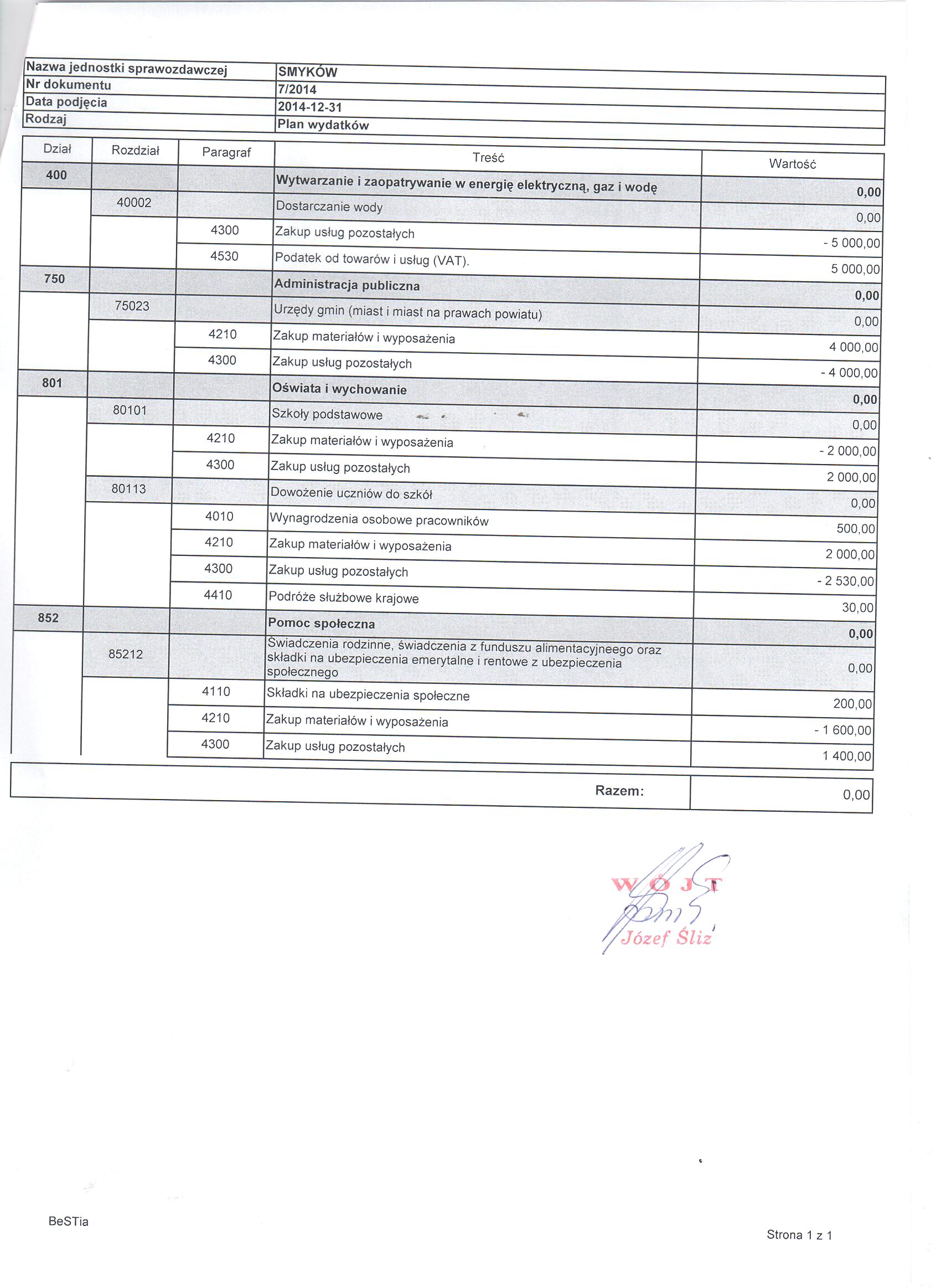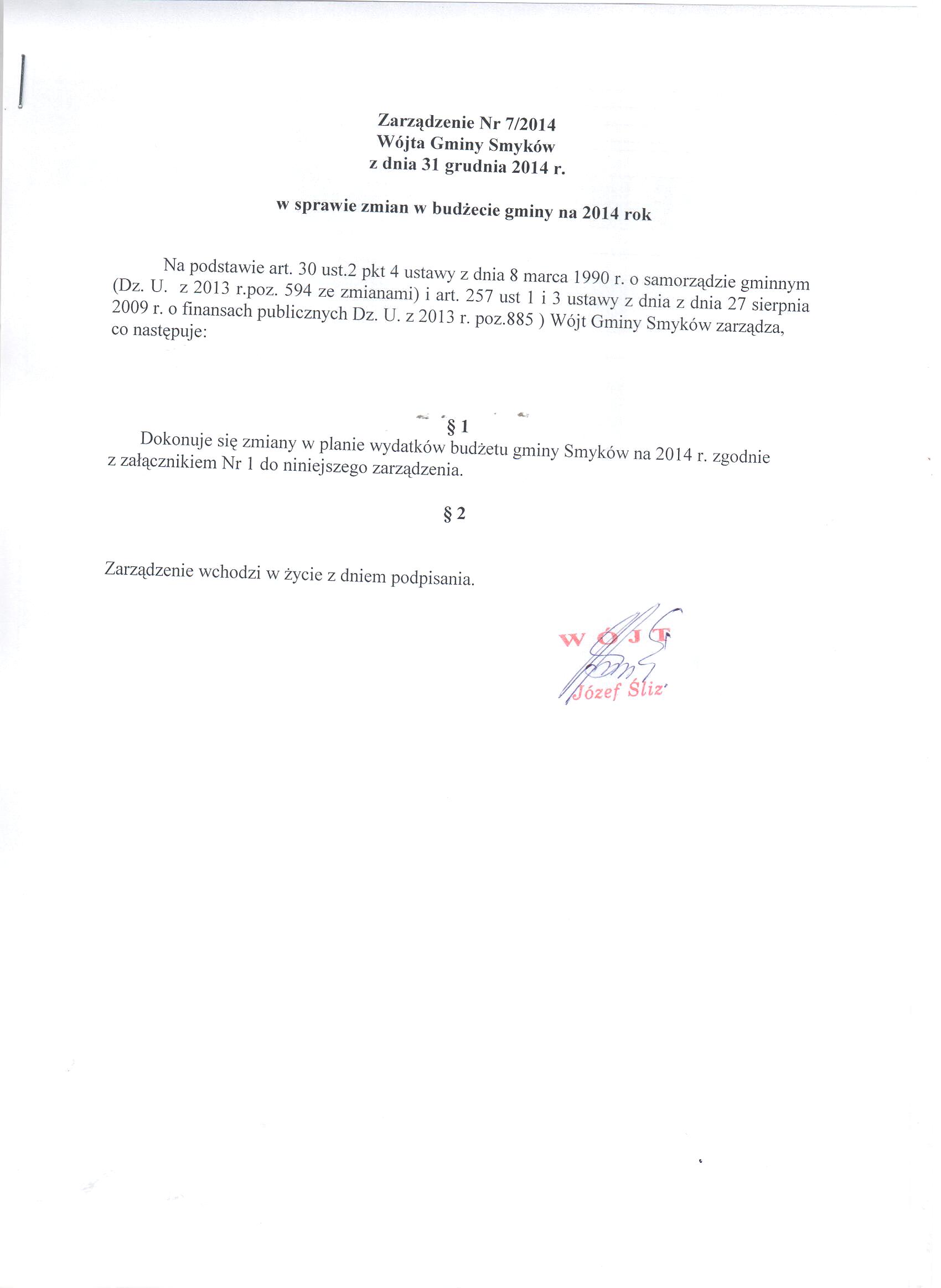 Zarządzenie 7/14 w sprawie zmian w budżecie gminy na 2014 rok |