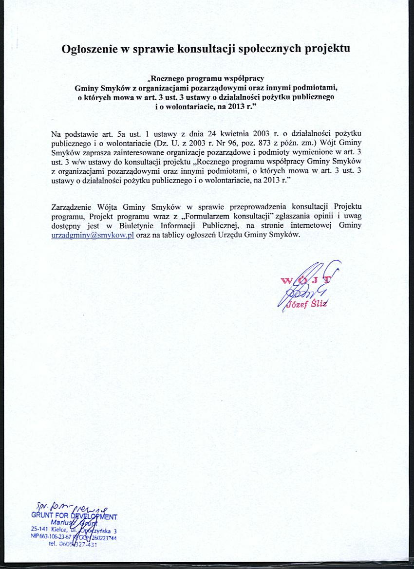 Zarządzenie 138/2012 w sprawie wyznaczenia Przewodniczacego Rady Społecznej Samodzielnego Niepublicznego Zakładu Opieki Zdrowotnej Gminnego Osrodka Zdrowia w Smykowie |