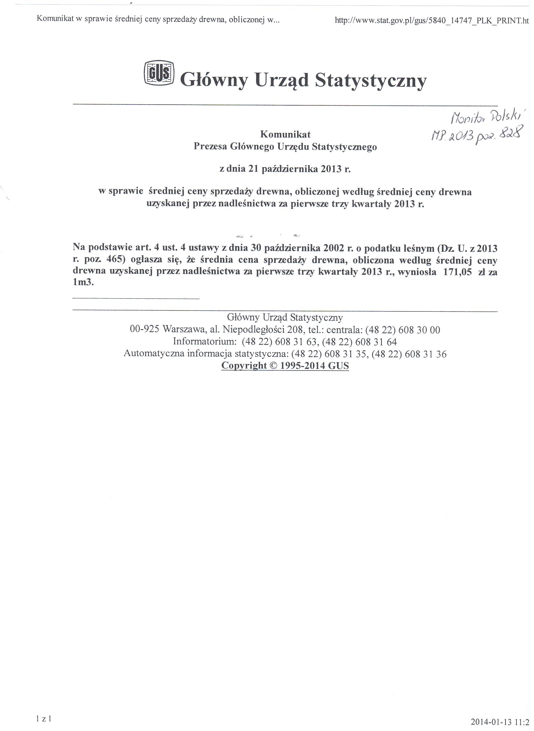 Komunikat Prezesa GUS w sprawie średniej ceny sprzedaży drewna |