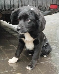 Opis zwierzęcia: Gatunek samica. Rasa – mieszaniec. Maść – czarna z białym. Wiek – około roku.